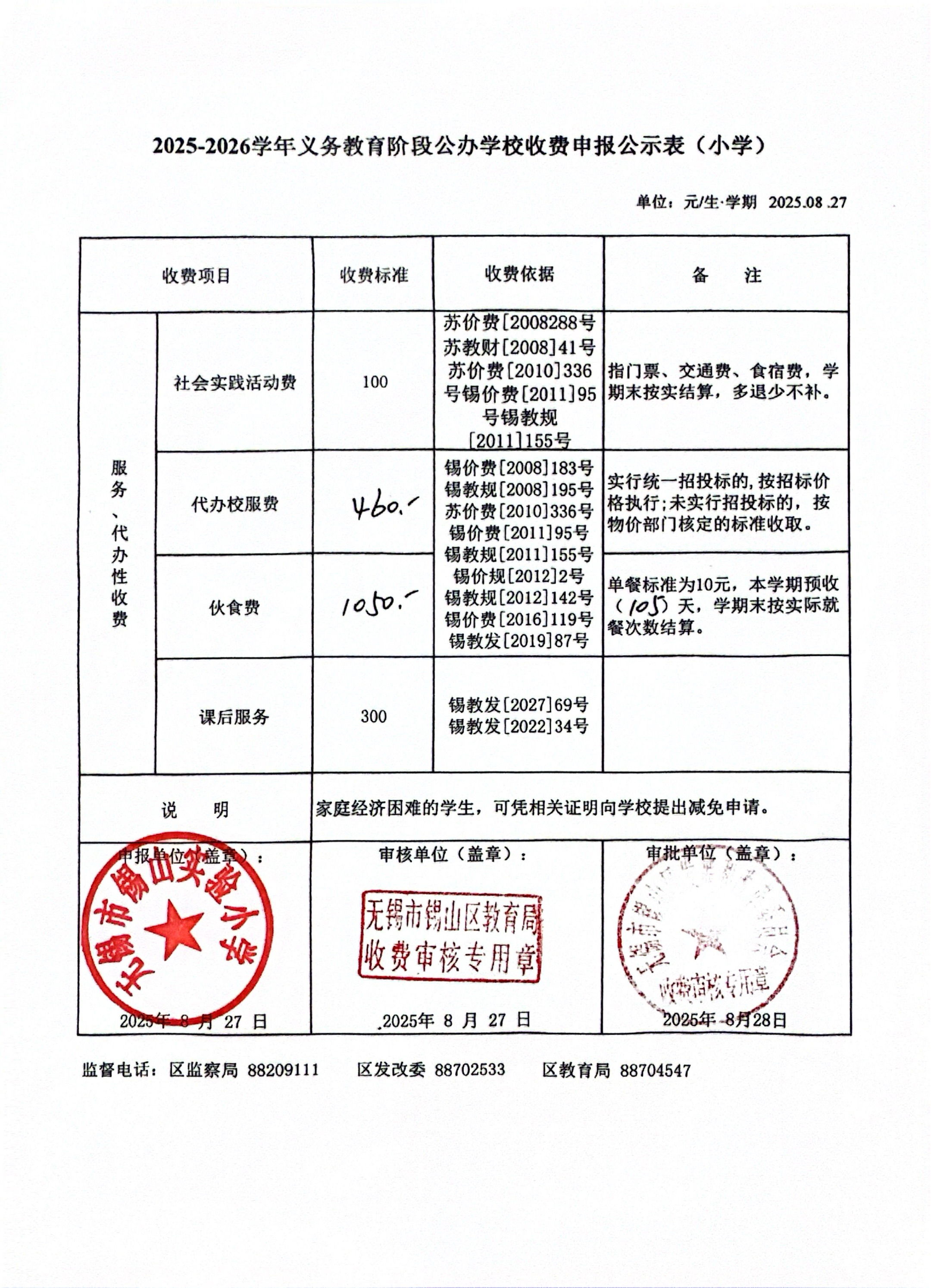 XSJY011-C0400-2025-002 2025-2026学年收费申报公示表